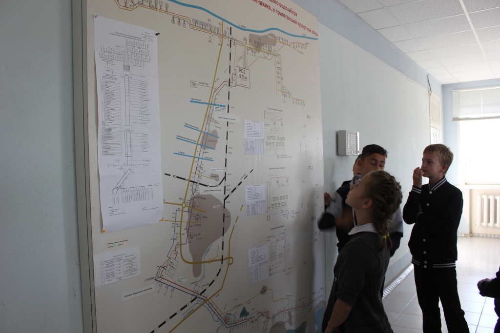 Школьники побывали в аварийно-диспетчерской службе, откуда осуществляется управление системой водоснабжения всего РЭУ, в лаборатории, в ремонтных мастерских и на насосной станции. Ребята своими глазами увидели весь сложный комплекс инженерных сооружений и санитарных мероприятий. Узнали, какие требования предъявляются к качеству питьевой воды и как проводятся лабораторные исследования, как происходит забор воды и как потом эта вода транспортируется по водоводам. Убедились, что водоснабжение - это энергоемкое и технологически сложное производство.