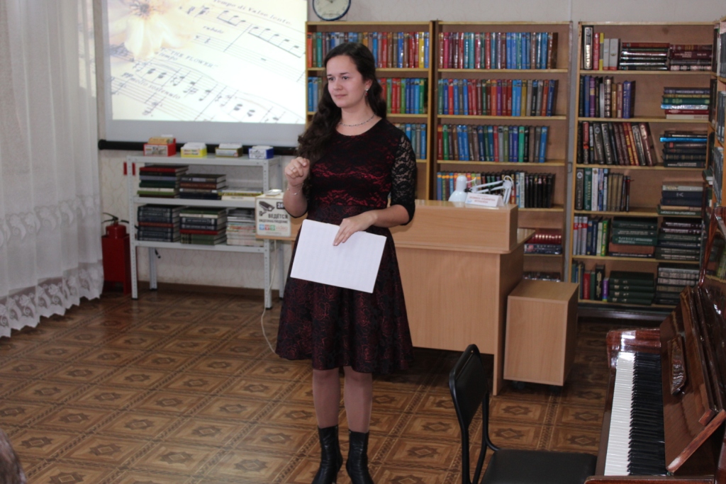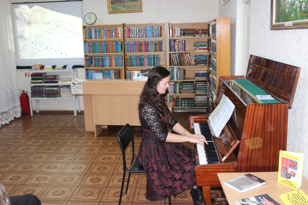 Еще один гость встречи, руководитель вокального кружка «Бельканто» районного Дома культуры, Екатерина Хасьянова рассказала ребятам о влиянии хорошей музыки на состояние души человека, вдохновляя его на добрые поступки, пробуждая сострадание, отзывчивость к чужой беде. Екатерина Шеукетовна сыграла для школьников ряд музыкальных произведений известных композиторов.