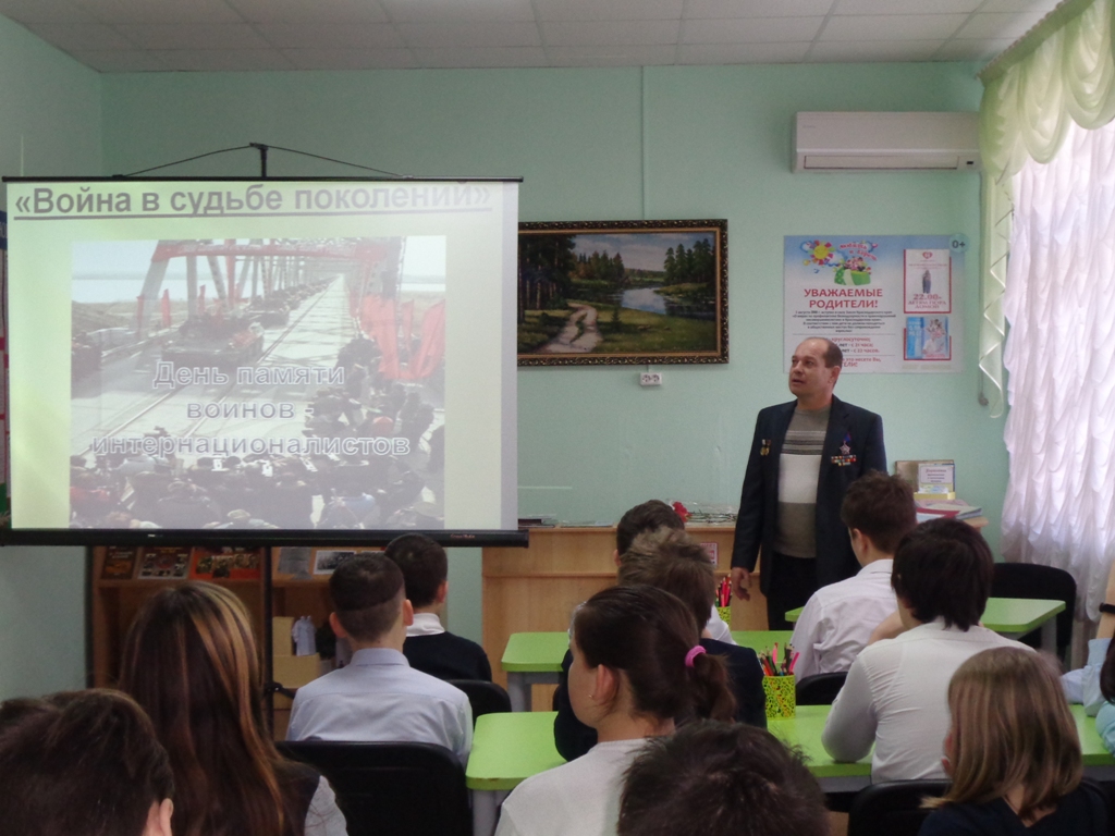 Перед ребятами выступил председатель Темрюкского районного отделения Краснодарской региональной организации Общероссийской общественной организации «Российский Союз ветеранов Афганистана» Евгений Викторович Присюда. В завершение встречи просмотрен документальный фильм, сообщила Анна Кобзарь, библиотекарь Центральной городской детской библиотеки им. О. Кошевого.