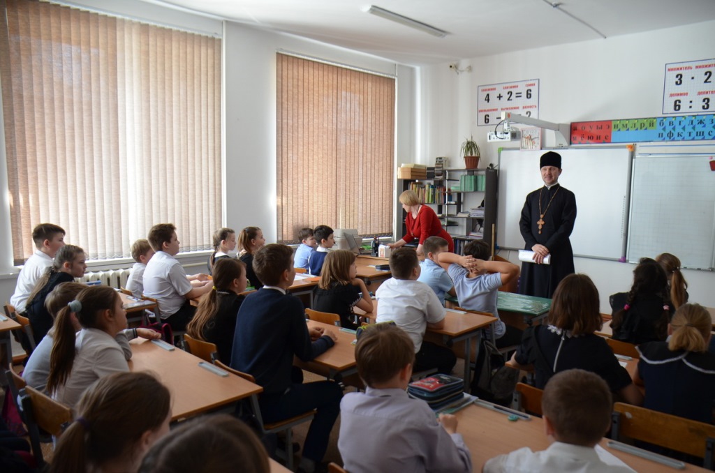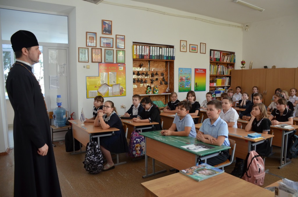 Настоятель храма святого Александра Невского Темрюка протоиерей Виталий Колмык в школе №1 города Темрюка провел сначала для учащихся 4 «А», «Б» и «В», а затем и для учащихся 3 «А» и «В» классов духовно-просветительскую беседу «Азы православия», посвящённую Дню православной книги. Священнослужитель познакомил детей с историей праздника, когда появились первые печатные и как выглядели рукописные книги. Так же они узнали о создании старославянской азбуки великими просветителями, учёными братьями Кириллом и Мефодием, чей интерес к наукам, упорство в учении и трудолюбие является примером «для нас – граждан России 21 века»; побеседовал о таких качествах, необходимых человеку как вера, добро, любовь.