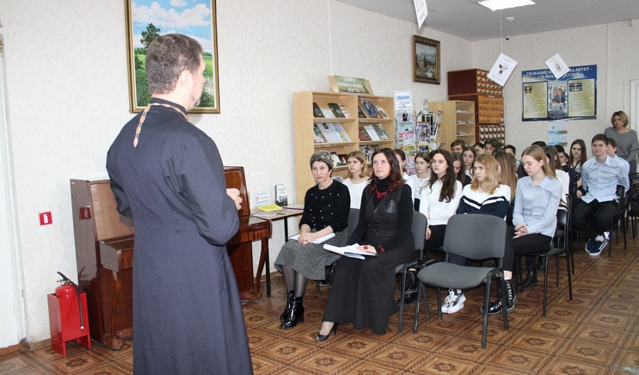 Приглашенный на мероприятие отец Виталий – настоятель храма Святого Благоверного князя Александра Невского г. Темрюка поведал школьникам о Русских Святых Воинах: преподобном Илье Муромце, праведных Иоанне Русском и Феодоре Ушакове. О том, что им позволило быть такими? В чем они черпали силы? Чем укрепляли дух свой?
