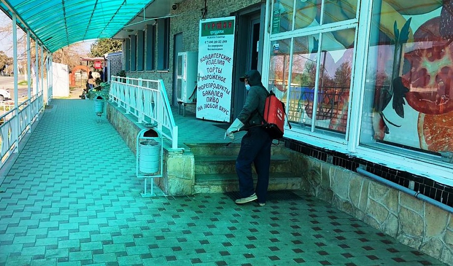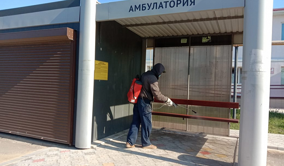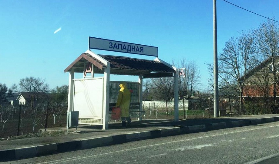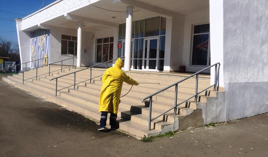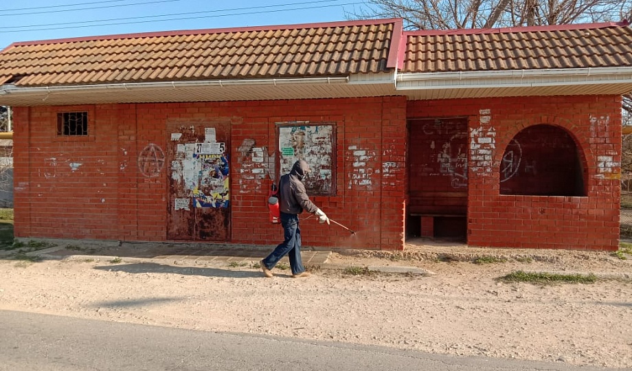 Продолжается работа и по дезинфекции общественных территорий. Улицы обрабатываются спецсредствами. Все специалисты и сотрудники коммунальных служб проводят обработку в специальных костюмах, масках и очках. Дезинфекцию проводят на остановках, дорог и тротуарах, детских площадках.