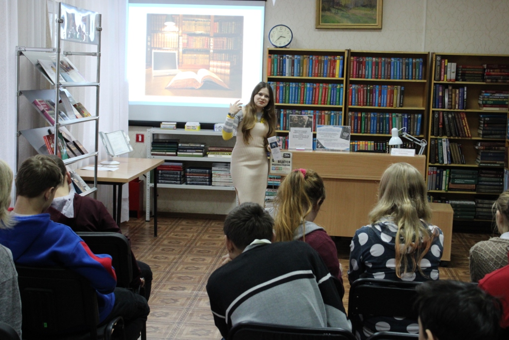 Ребята узнали историю появления первой библиотеки в городе, познакомились с современными возможностями представляемого учреждения, начиная с книжного фонда до услуг, оказываемых пользователям в электронном виде. Библиограф отдела обслуживания Надежда Попсуй рассказала учащимся о назначении библиотечных каталогов и картотек, их формах и видах, а также научила с ними работать.