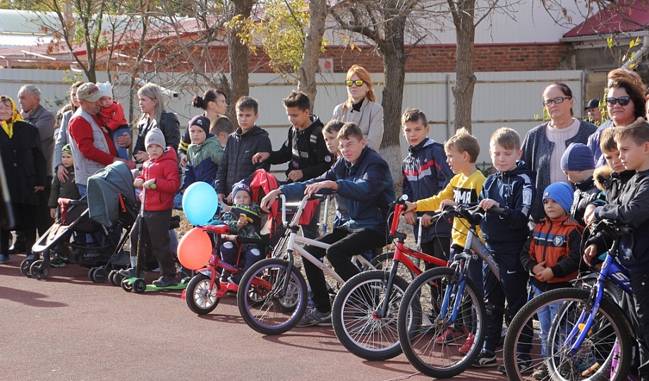 Традиционную красную ленточку помогли перерезать юные жители станицы.