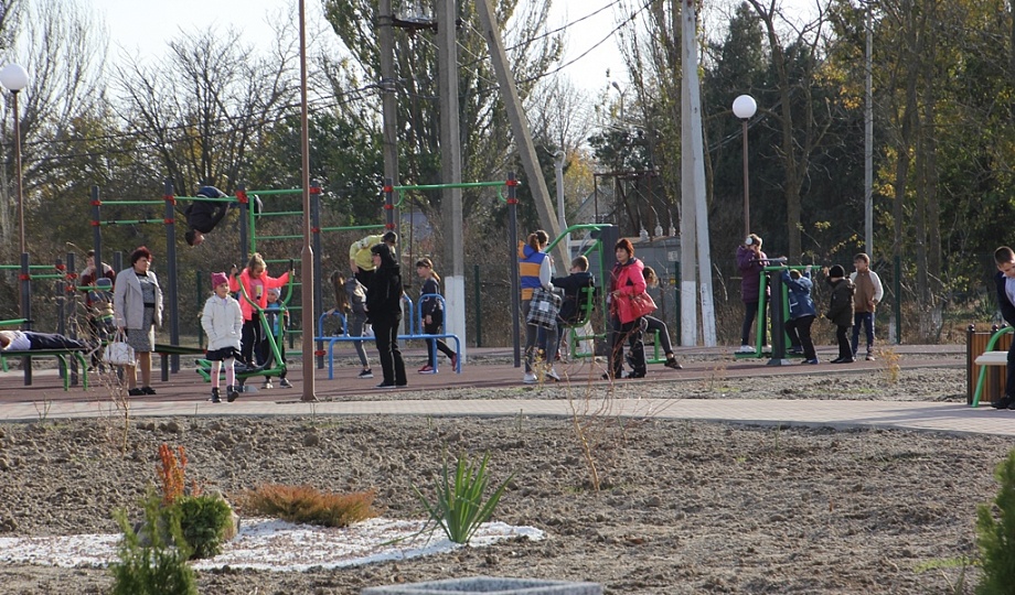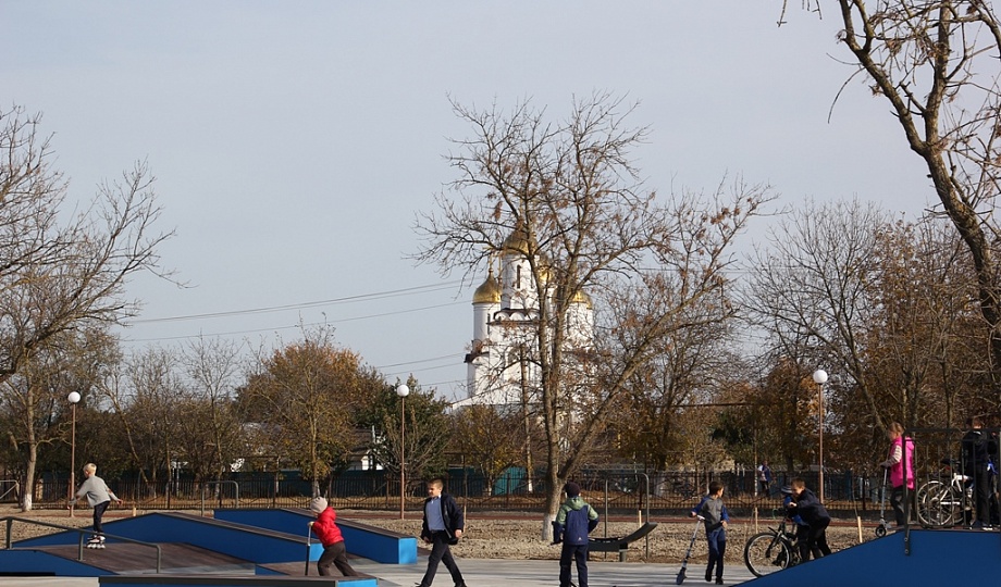 Благодаря федеральной программе «Формирование комфортной городской среды» на месте старого парка расположилась территория для семейного отдыха. Детский городок, воркаут и скейт площадки, поле со специальным покрытием для футбола и волейбола, лавочки и беседки, современная беговая дорожка – все это теперь доступно для жителей отдаленной от города станицы. В теплое время года одна из зон будет преображаться в летний кинотеатр, для экрана уже установлена рама. На территории высажены сто кустов роз, хвойные деревья и кустарники. Применен метод гидропосева газонной травы, что позволит покрыть участок сочной зеленью даже в ноябре.