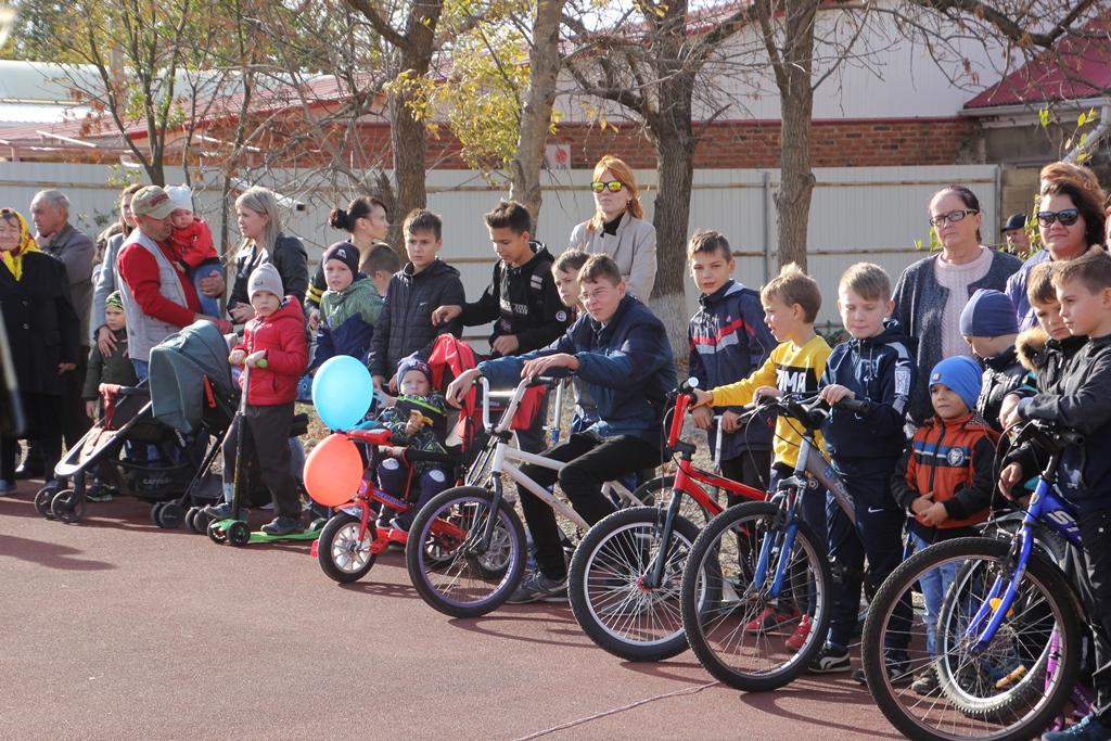 Традиционную красную ленточку помогли перерезать юные жители станицы.