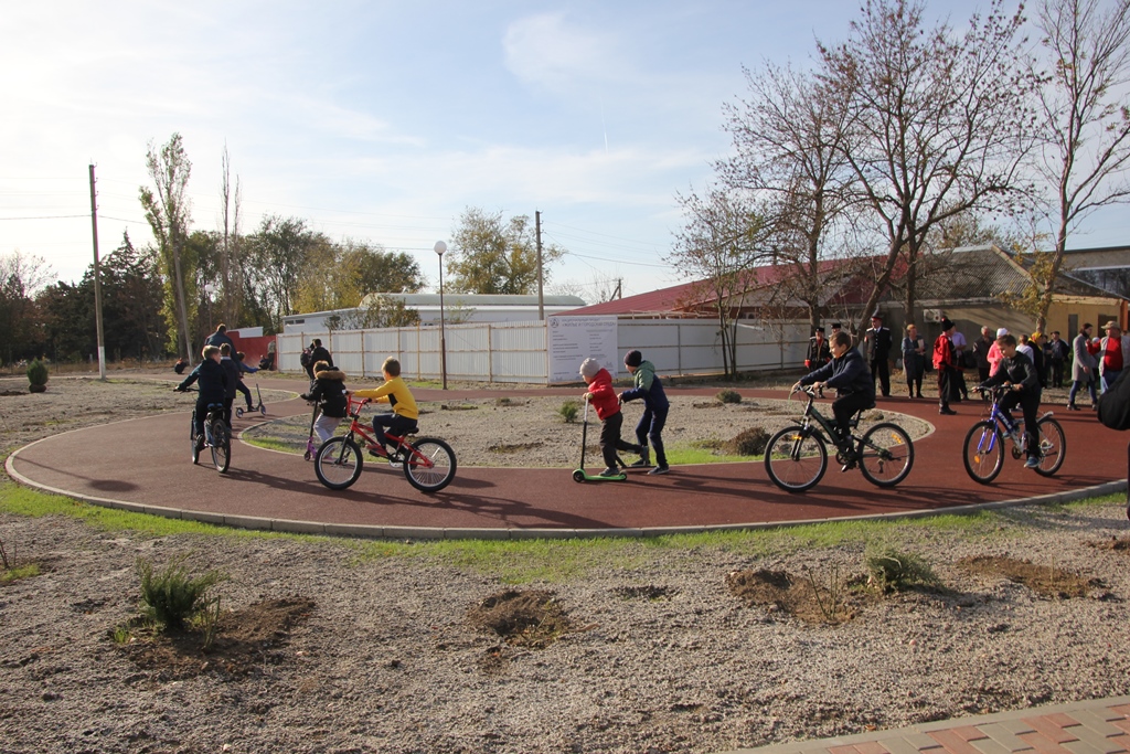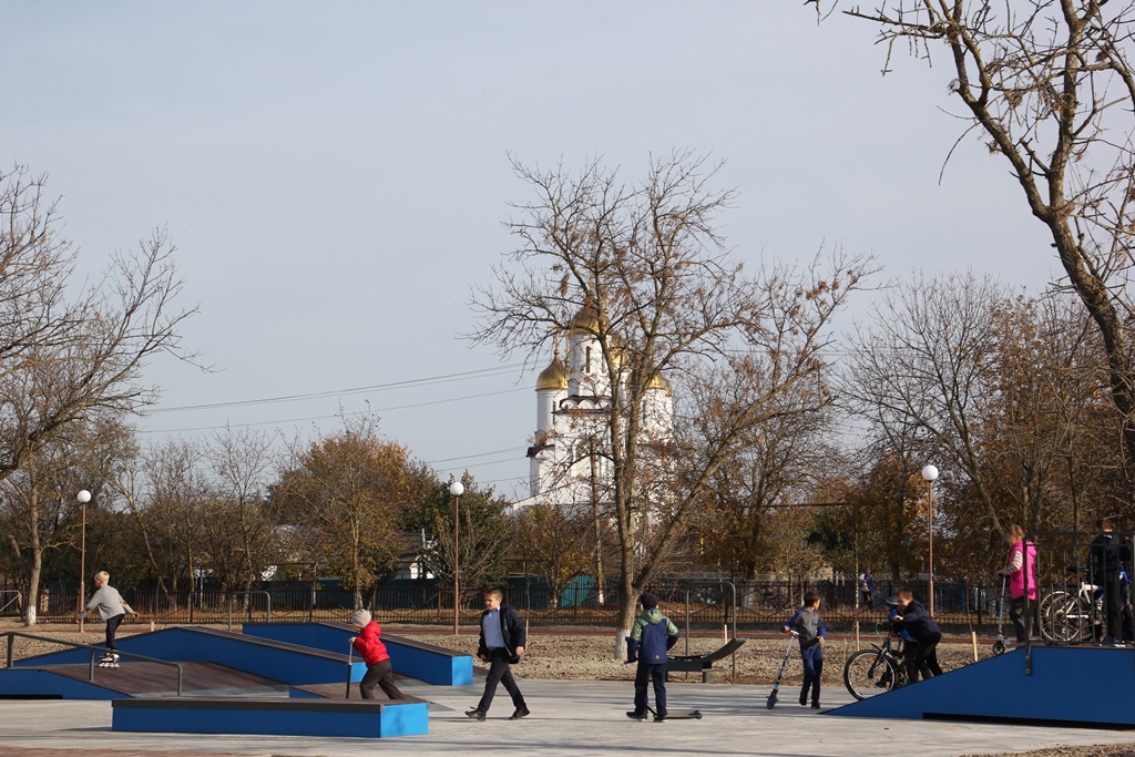 Благодаря федеральной программе «Формирование комфортной городской среды» на месте старого парка расположилась территория для семейного отдыха. Детский городок, воркаут и скейт площадки, поле со специальным покрытием для футбола и волейбола, лавочки и беседки, современная беговая дорожка – все это теперь доступно для жителей отдаленной от города станицы. В теплое время года одна из зон будет преображаться в летний кинотеатр, для экрана уже установлена рама. На территории высажены сто кустов роз, хвойные деревья и кустарники. Применен метод гидропосева газонной травы, что позволит покрыть участок сочной зеленью даже в ноябре.