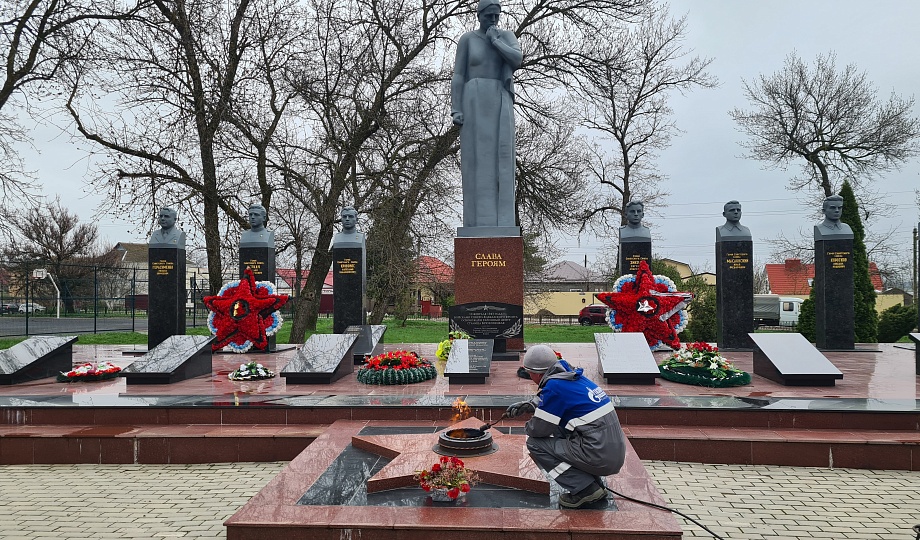 В преддверии празднования Дня Победы в Великой Отечественной войне специалисты АО «Газпром газораспределение Краснодар» провели техническое обслуживание 95 мемориальных комплексов с Вечным огнем, расположенных на территории Краснодарского края. Работы выполнены в рамках ежегодной всероссийской акции «Священный долг. Вечная память», инициированной ООО «Газпром межрегионгаз».