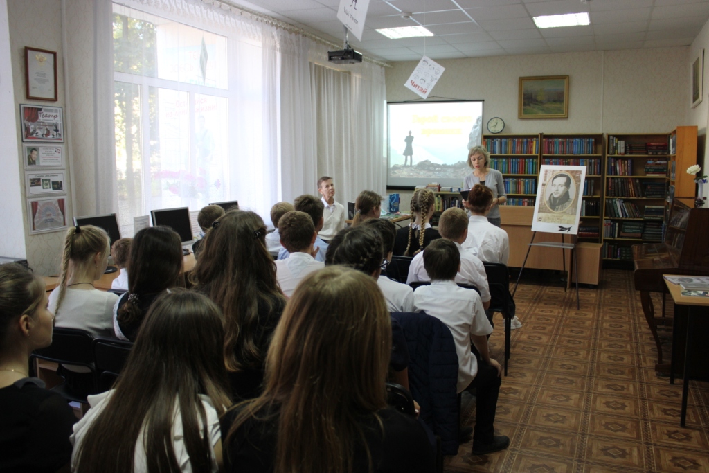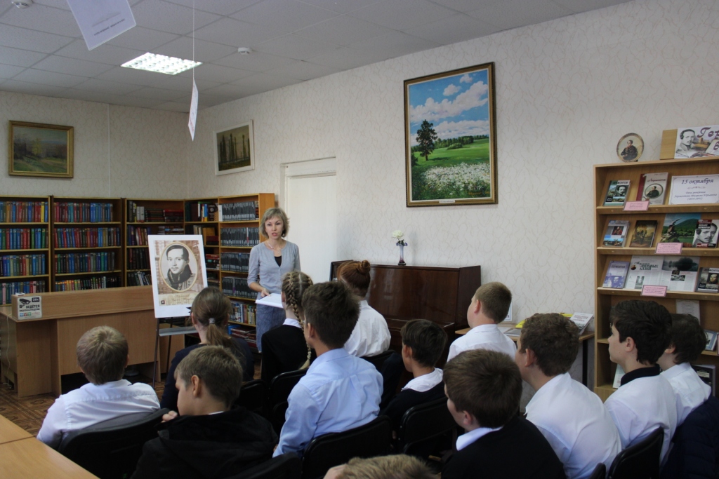 Конечно же, библиотекари не могли ни обойти темы пребывания Михаила Лермонтова на Кубани. Ведь это особая страница в истории нашей малой родины. Для семиклассников был показан документальный фильм Татьяны Дунаевой «М.Ю. Лермонтов» из авторского цикла передач «История в лицах».