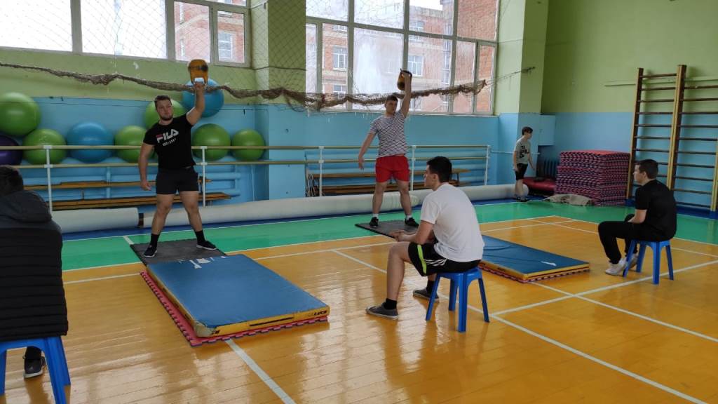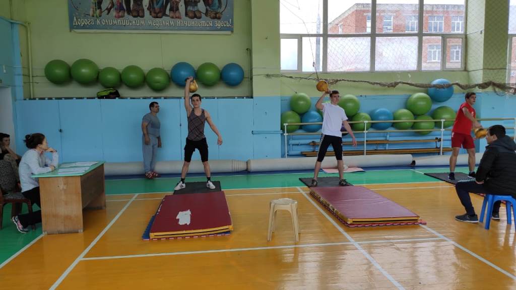 В детско-юношеской спортивной школе города Темрюка в рамках оборонно-массового военно-патриотического воспитания среди допризывной молодежи состоялись соревнования по гиревому спорту. Юноши соревновались в силовом упражнении — рывок.