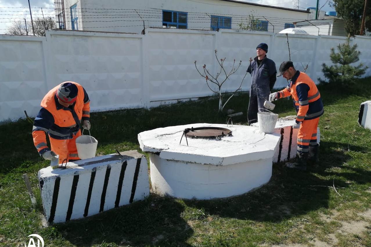 С наступлением теплой погоды территории производственных объектов ресурсоснабжающего предприятия существенно преобразились. Приведены в порядок санитарные зоны артезианских скважин, насосных станций, станций очистки воды. Произведены работы по вырубке молодой поросли деревьев и кустарников, покосу травы, ремонту дорожного покрытия, необходимые побелка и покраска павильонов, ограждений, бетонных конструкций и зданий. Выполнена уборка территорий от природного и бытового мусора, обрезка и побелка деревьев, проведена посадка цветов на клумбах.