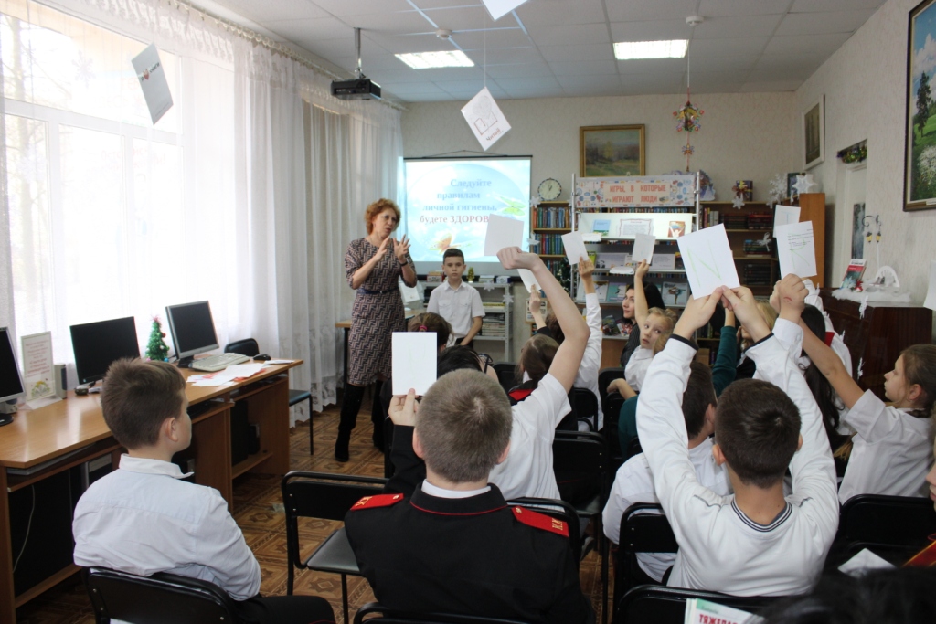 В рамках антинарко в межпоселенческой библиотеке прошел урок общения «Играйте на здоровье», участниками которого стали учащиеся 5 класса МБОУ ООШ № 14. Цель данного мероприятия - воспитание навыков здорового образа жизни у детей.