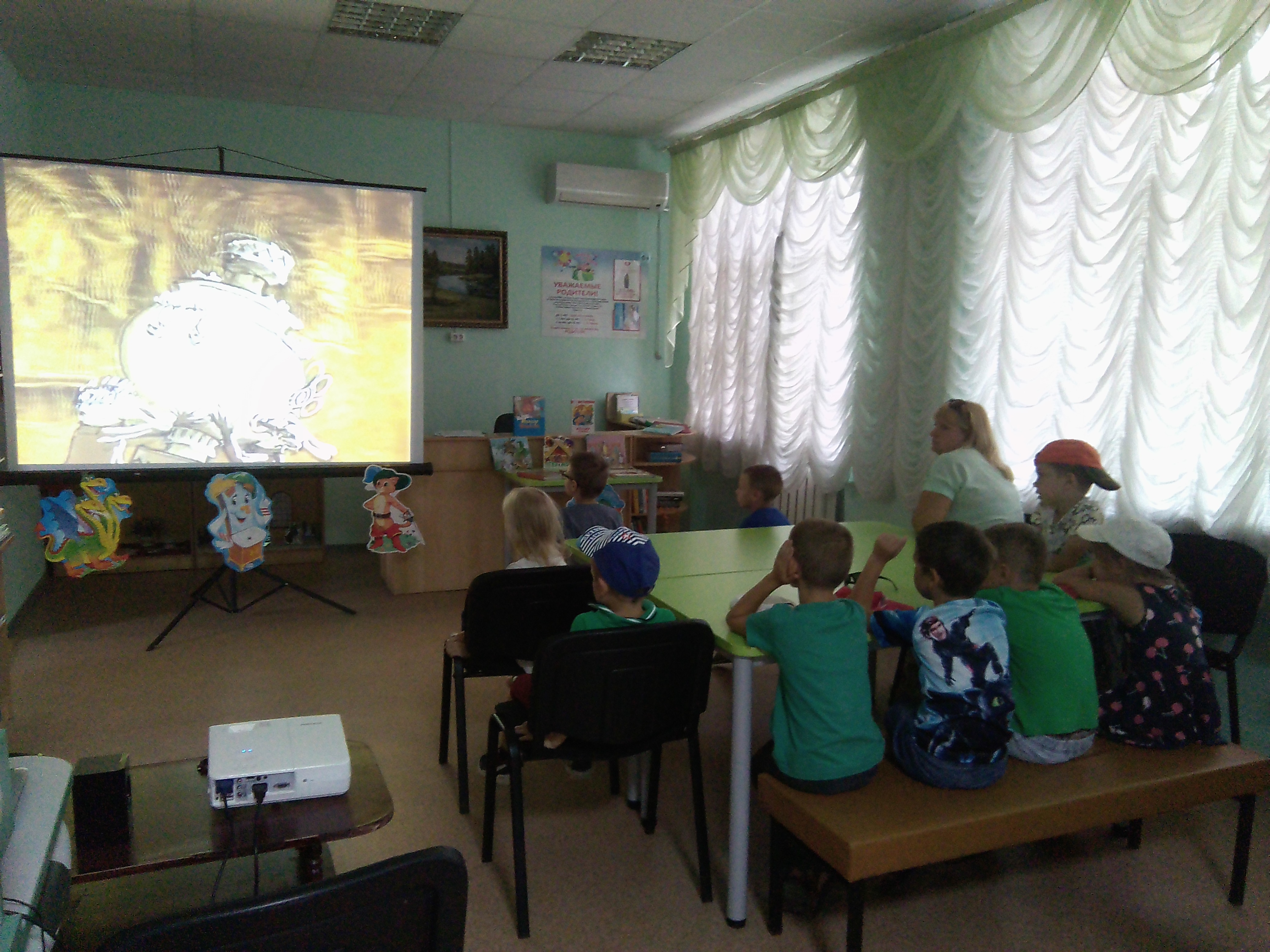 В завершение мероприятия ребята отгадали загадки о сказочных героях и посмотрели мультфильм «Муха-Цокотуха».