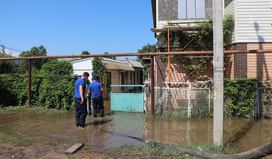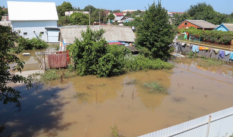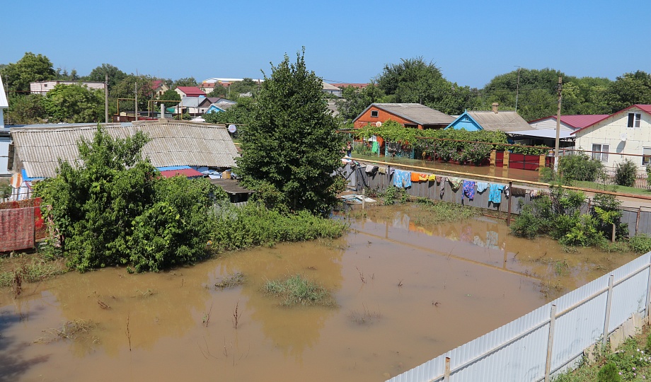 Из-за ливневых дождей в Темрюкском районе оказались подтоплены жилые дома и дворовые территории