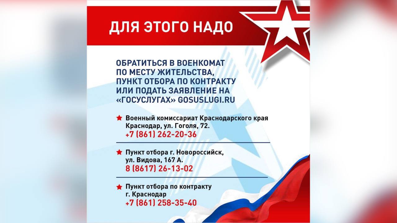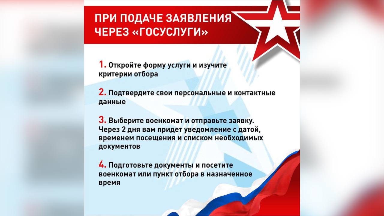 Для этого надо обратиться в военкомат по месту жительства, пункт отбора по контракту или подать заявление на «Госуслугах» gosuslugi.ru