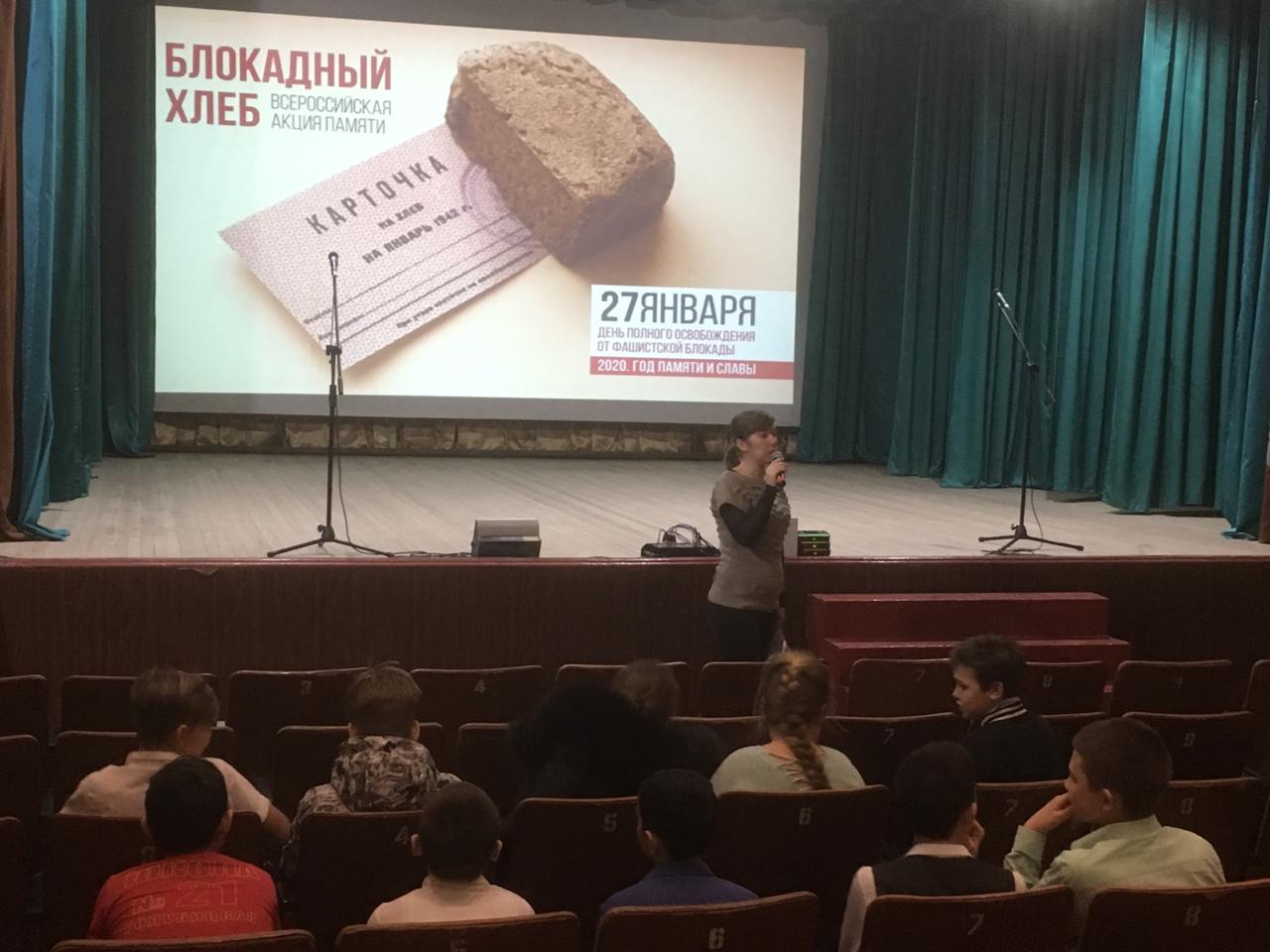 В рамках всероссийской акции "Блокадный хлеб" в сельском доме культуры станицы Голубицкой для учеников пятых классов школы № 21 провели урок мужества «Как выживали в блокадном Ленинграде».