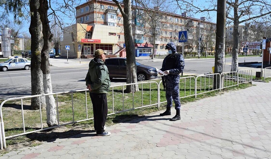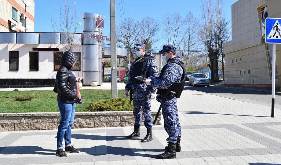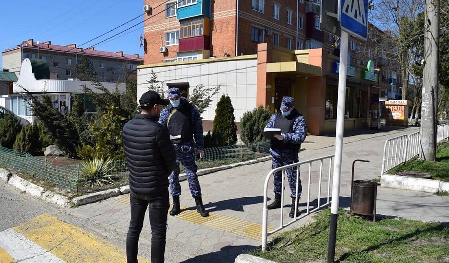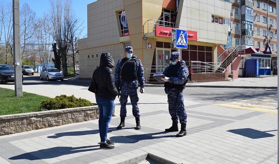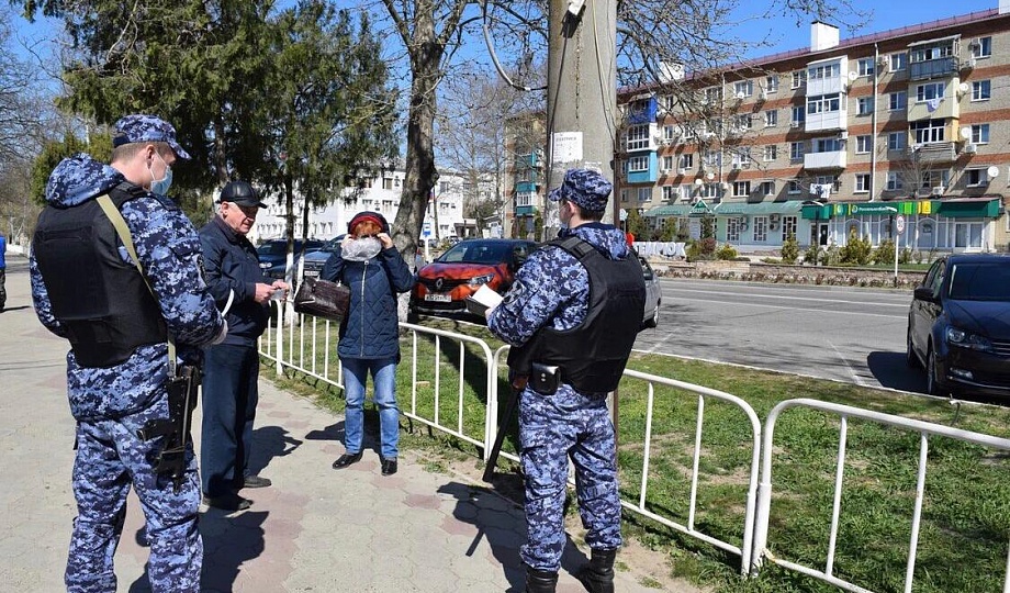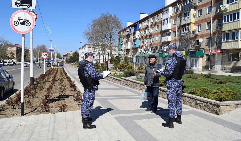 Сотрудники Росгвардии контролируют, чтобы жители Темрюкского района не покидали свои дома и соблюдали указ президента РФ.