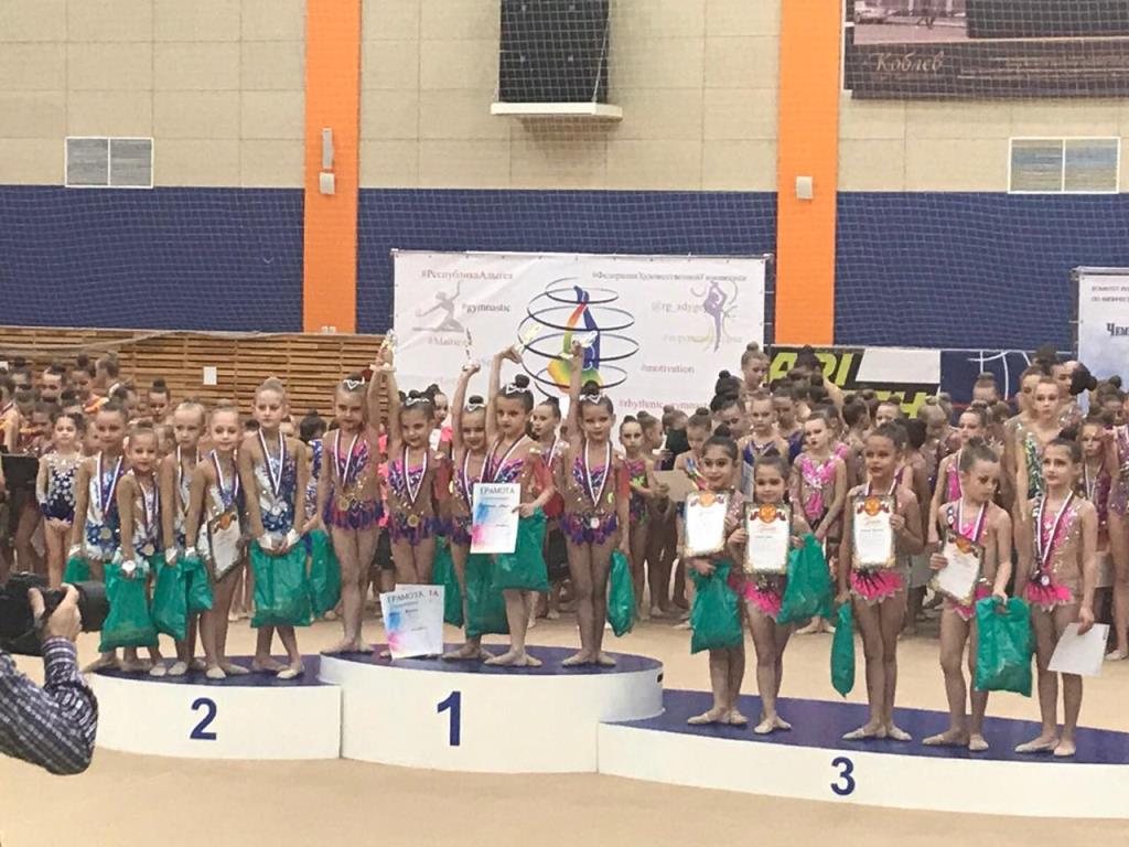 Воспитанницы тренеров Павловой Наталья и Симонян Натальи выступили по программе групповых упражнений, где соревновались со спортсменками из городов России, Краснодарского края и Адыгеи. В групповых упражнениях первое место заняла команда гимнасток 2012 года рождения, второе место заняла команда 2012-2013г.р. и на третьем месте гимнастики 2009 и 2008г.р., сообщает старший тренер отделения художественной гимнастики Наталья Павлова.