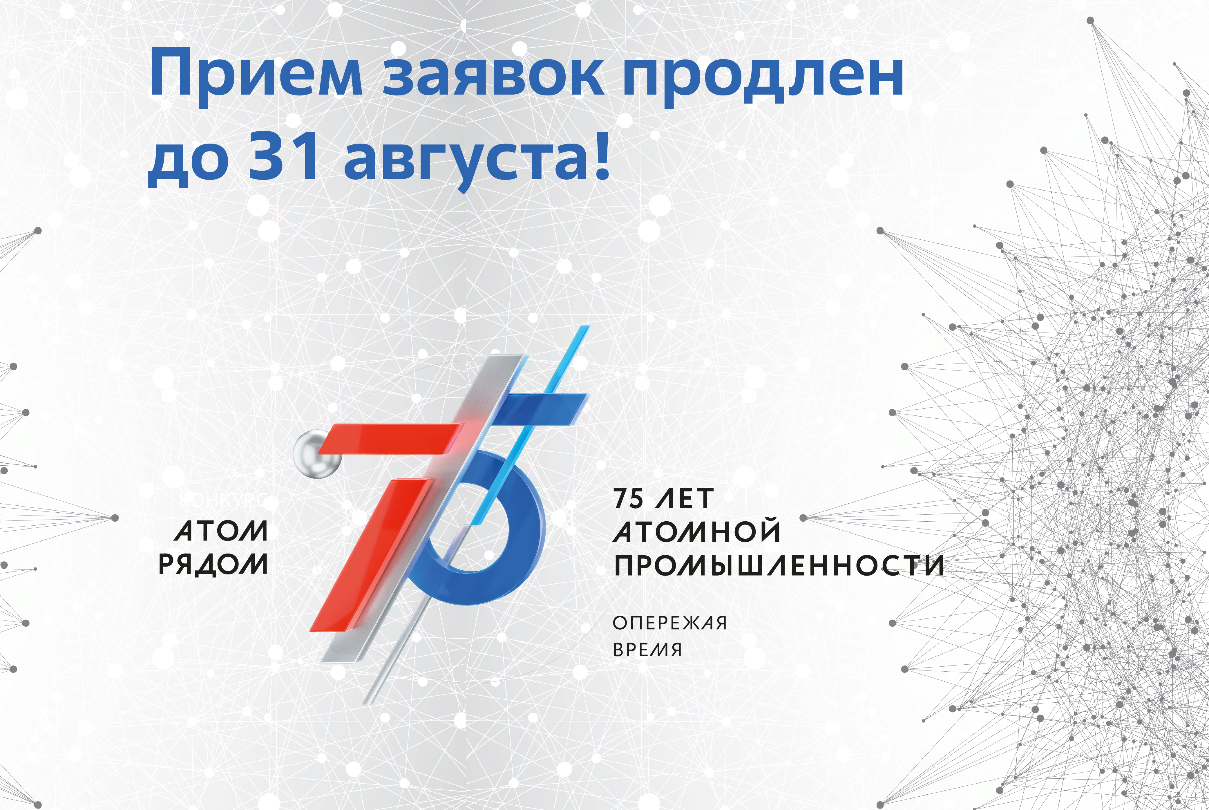 Мы объявляем о продлении конкурса «Атом рядом», который пройдет при поддержке корпорации «Росатом» и будет приурочен к 75-летнему юбилею отечественной атомной промышленности.