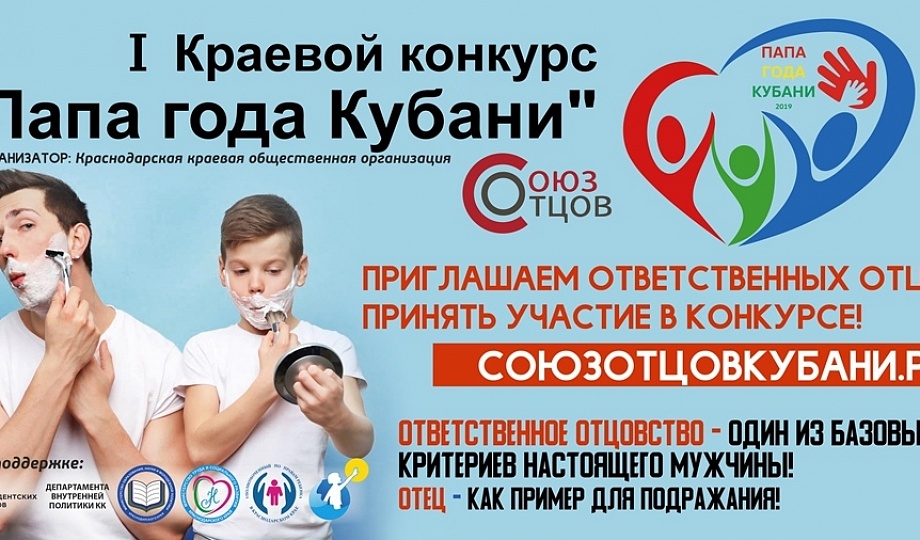 В целях признания и популяризации заслуг в области ответственного отцовства и социальной деятельности отцов, выявления лучших кубанских отцовских социальных практик, проектов и инициатив, направленных на воспитание детей в семье, Краснодарской краевой общественной организацией «Союз отцов» проводится региональный конкурс «Папа года Кубани».