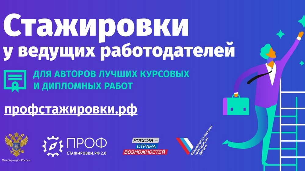 «Профстажировки 2.0» – совместный проект президентской платформы «Россия – страна возможностей» и Общероссийского народного фронта, который реализуется в рамках федеральной программы «Социальные лифты для каждого» национального проекта «Образование».