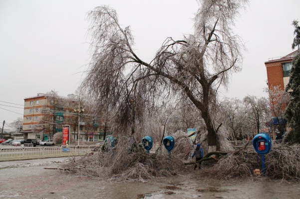 В ночь с 20 на 21 января в Темрюкском районе произошло ухудшение погоды. Из-за ледяного дождя деревья, провода, крыши домов покрылись коркой льда. Ветки и деревья обрушились на тротуары, кровлю зданий, машины, электролинии и теплотрассы, территории школ. С 7.00 в Темрюкском районе введен режим ЧС. Работает оперативный штаб, который возглавляет глава района Иван Василевский.