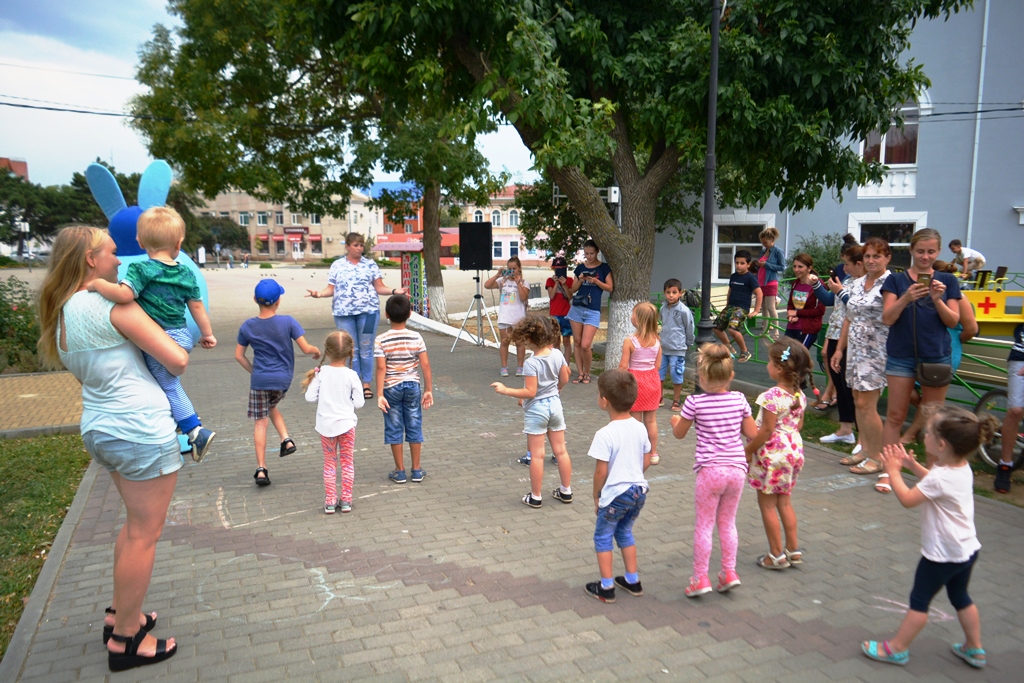 Ведущая мероприятия - заведующая отделом по работе с молодежью Евгения Бажан совместно с представителями волонтерского движения «РИТМ» МБУК «РДК» предложили всем присутствующим поучаствовать в интересных играх и проявить свои творческие способности в танцевальном флешмобе. Все желающие могли сфотографироваться с веселым Крошем, который дарил всем детям прекрасное настроение.