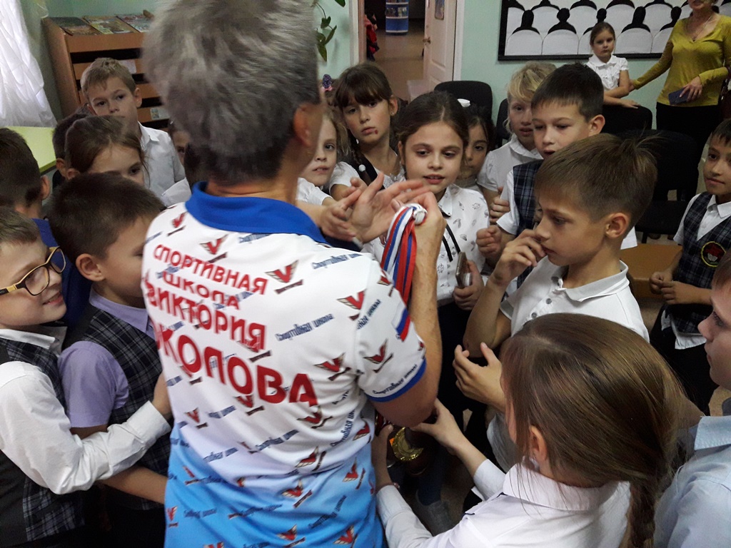 В Центральной городской детской библиотеке им. О. Кошевого, в рамках Краевого марафона здоровья «Старт здоровью детей», прошла встреча второклашек 13-ой школы с тренером «Спортивной школы «Виктория» по настольному теннису, Галиной Соколовой, чемпионкой краевых соревнований, призёром российских и международных турниров среди ветеранов. Галина Владимировна провела с детворой весёлую зарядку под ритмичную музыку, рассказала о себе и о спортивных достижениях своих воспитанников, показала свои награды, продемонстрировала видео-ролики о спортивной школе и об отделении настольного тенниса. Детишки прослушали песни и стихи об этом увлекательном и полезном для здоровья, виде спорта.