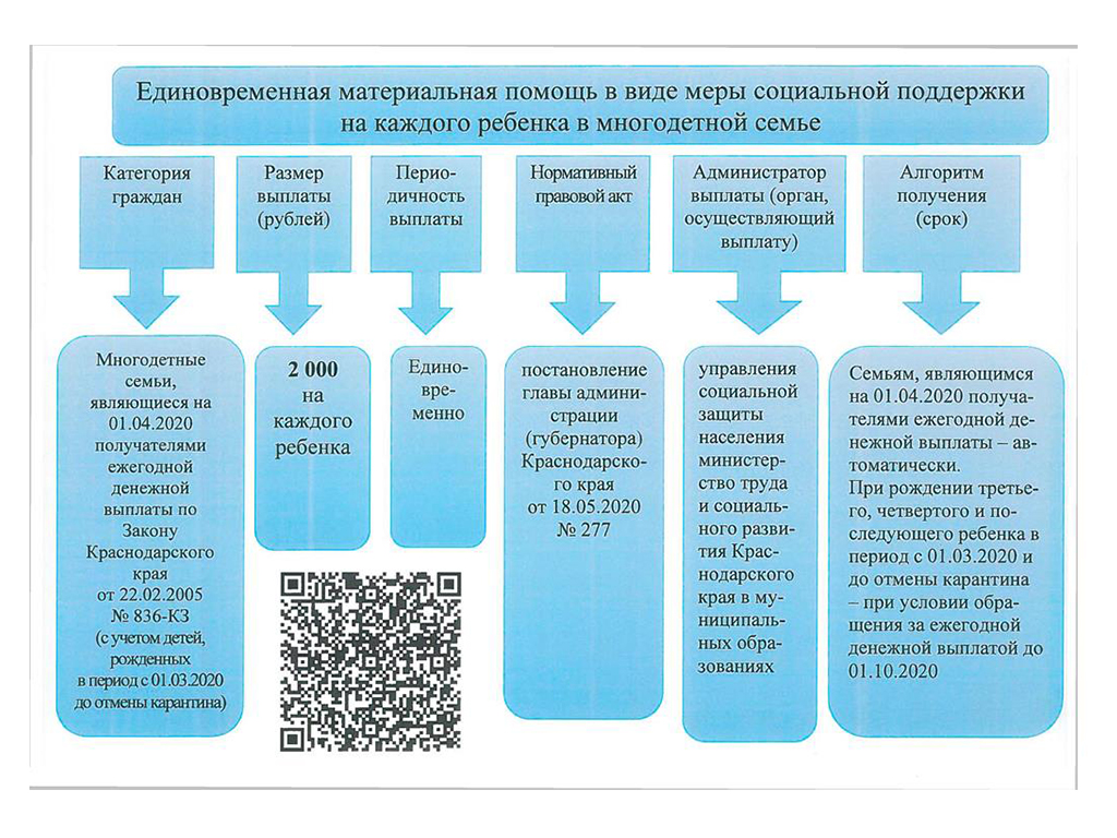 Многодетные семьи, являющиеся на 01.04.2020 получателями ежегодной денежной выплаты по Закону Краснодарского края от 22.02.2005 № 836-КЗ (с учетом детей, рожденных в период с 01.03.2020 до отмены ограничительных мероприятий |