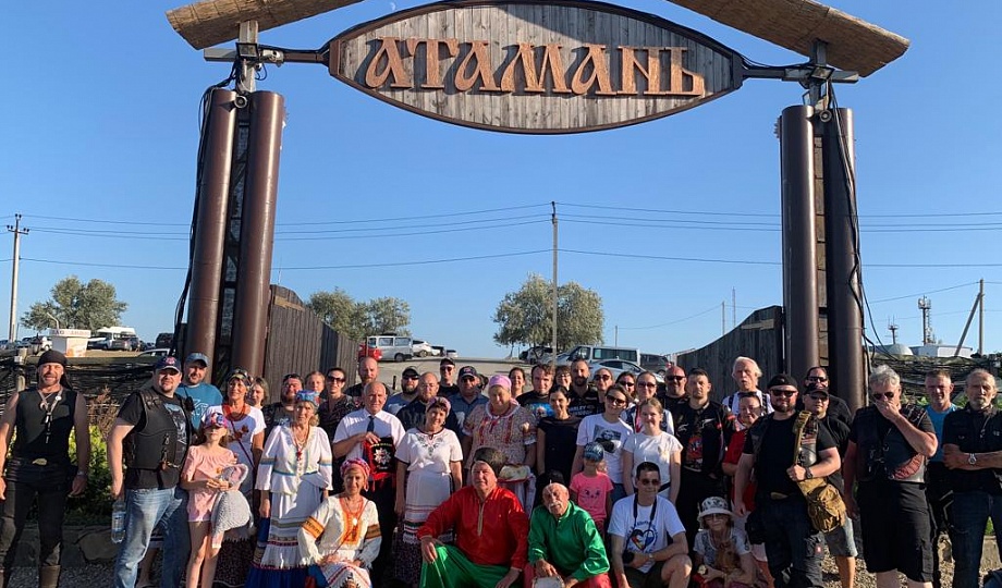 Байкеры побывали в выставочном комплексе «Атамань», где их встретили с хлебом-солью и провели экскурсию по этнографическому комплексу.