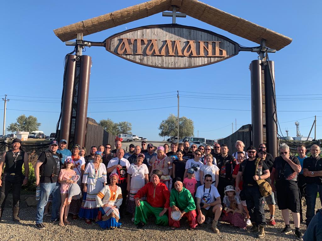 Байкеры побывали в выставочном комплексе «Атамань», где их встретили с хлебом-солью и провели экскурсию по этнографическому комплексу.