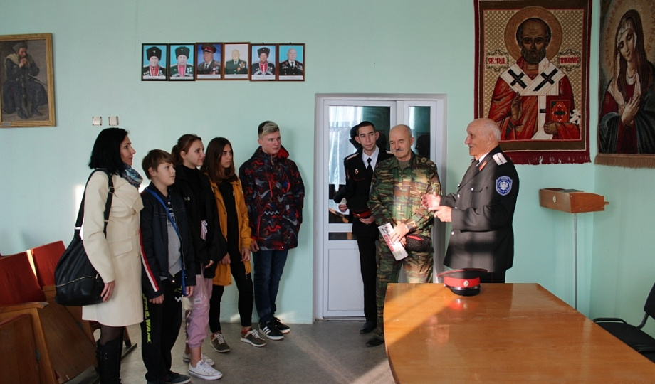 Экскурсию провели заместитель атамана Таманского казачьего отдела ККВ Ткалич А. Н. и член совета стариков ТГКО Полюшенко В. С. Рассказ шел об истории Кубанского казачества с древних времен до наших дней. Ребята проявили живой интерес, их больше всего заинтересовало вооружение казаков, предметы быта и их старые названия.