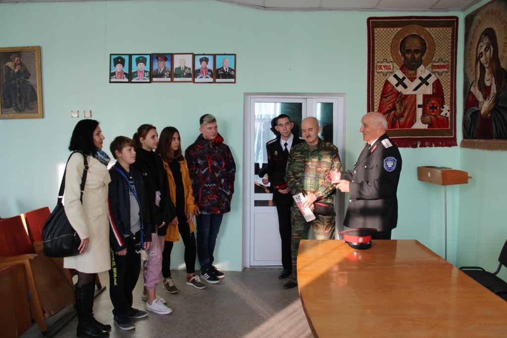 Экскурсию провели заместитель атамана Таманского казачьего отдела ККВ Ткалич А. Н. и член совета стариков ТГКО Полюшенко В. С. Рассказ шел об истории Кубанского казачества с древних времен до наших дней. Ребята проявили живой интерес, их больше всего заинтересовало вооружение казаков, предметы быта и их старые названия.