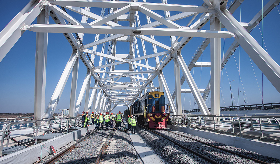 Две бригады – со стороны Керчи и Тамани – встретились и сомкнули рельсы под сводом арки. Финальные звенья были торжественно уложены на втором пути (крымское направление). На первом – для встречного движения – стыковку провели месяцем ранее. Суммарно на двухпутной железной дороге – почти 5 тысяч тонн рельсов и более 76 тысяч штук шпал.