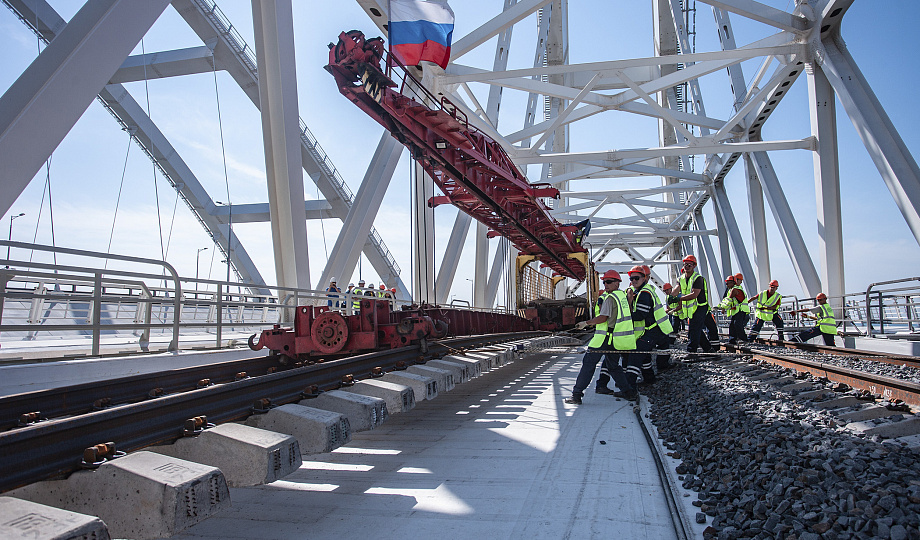 На Крымском мосту уложены все рельсы