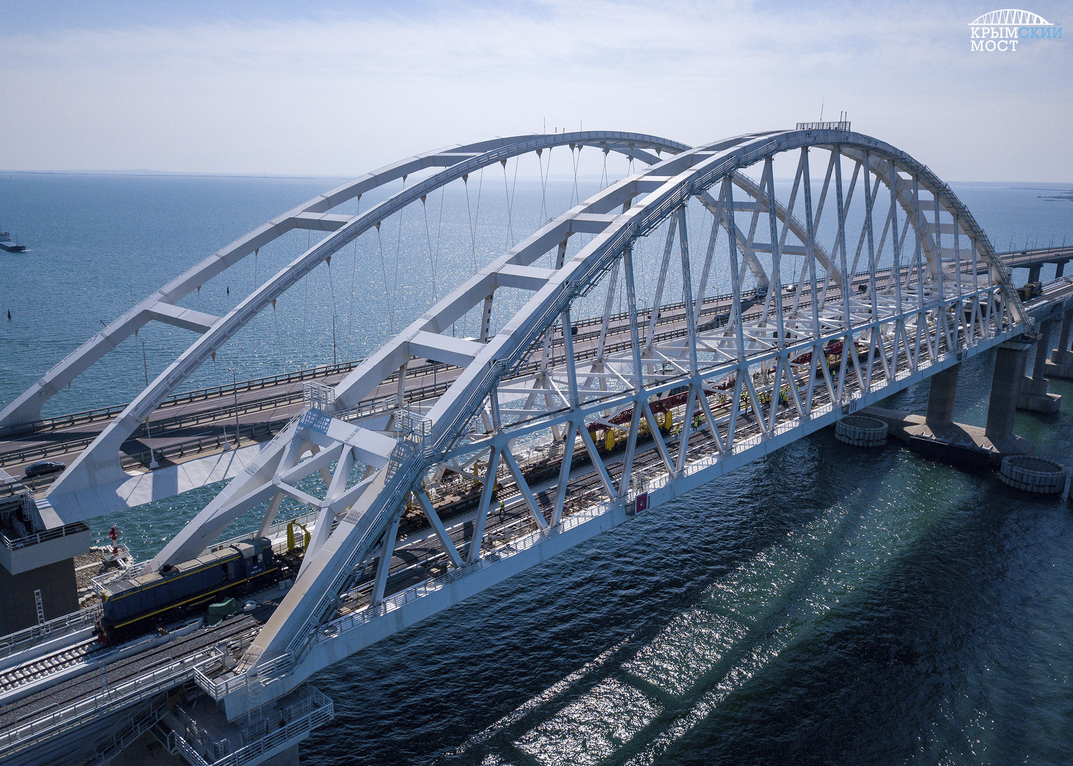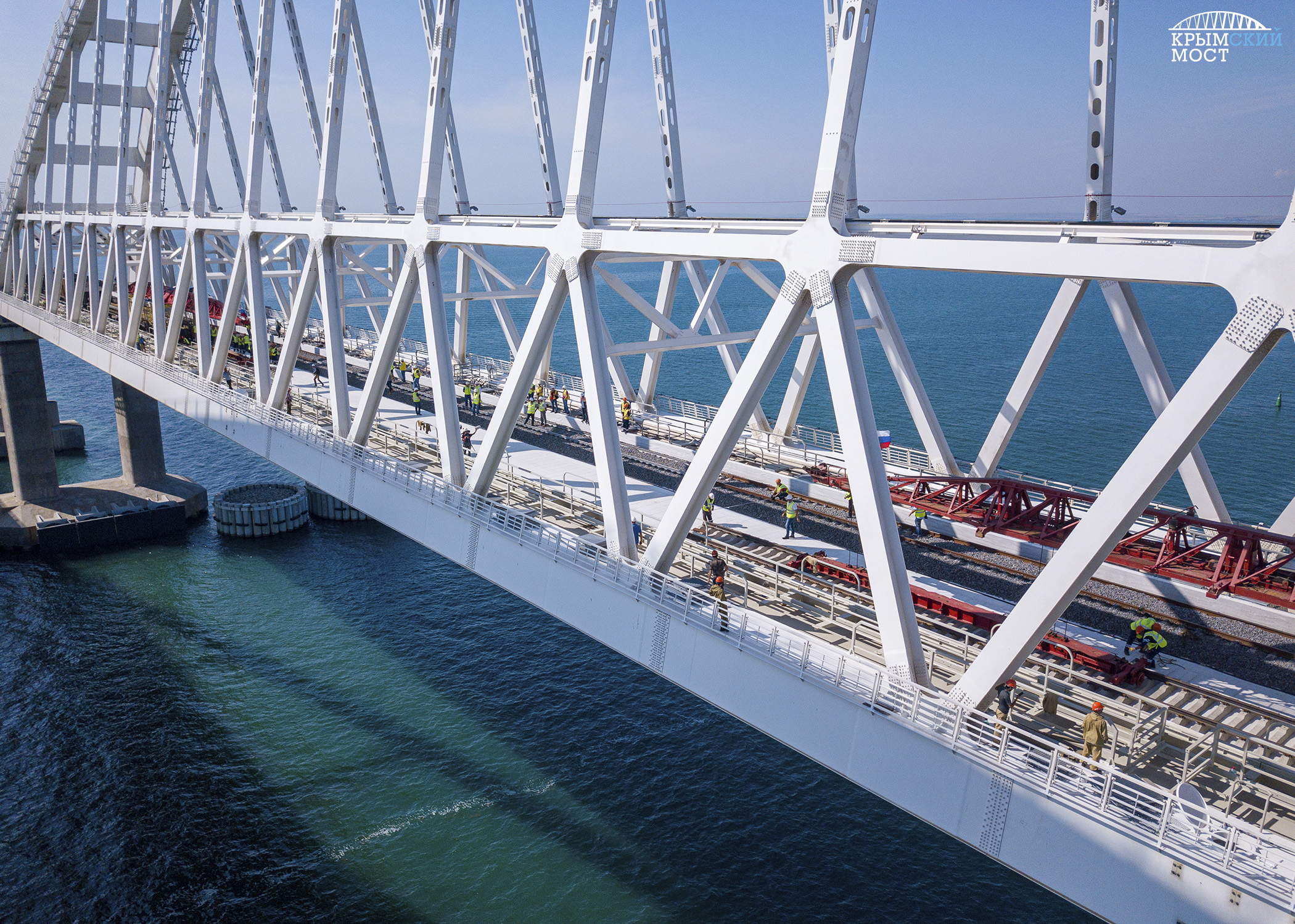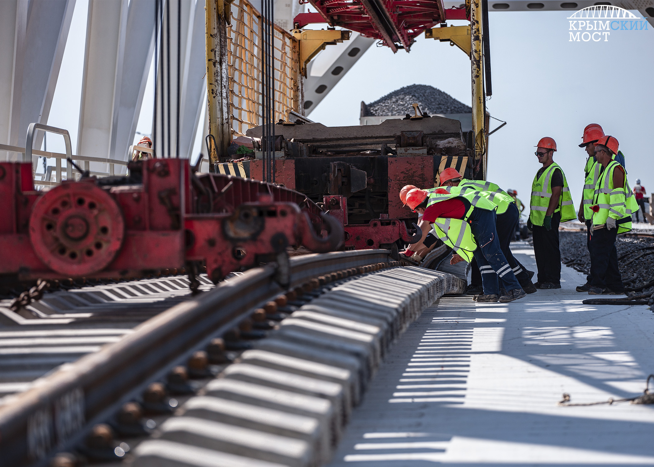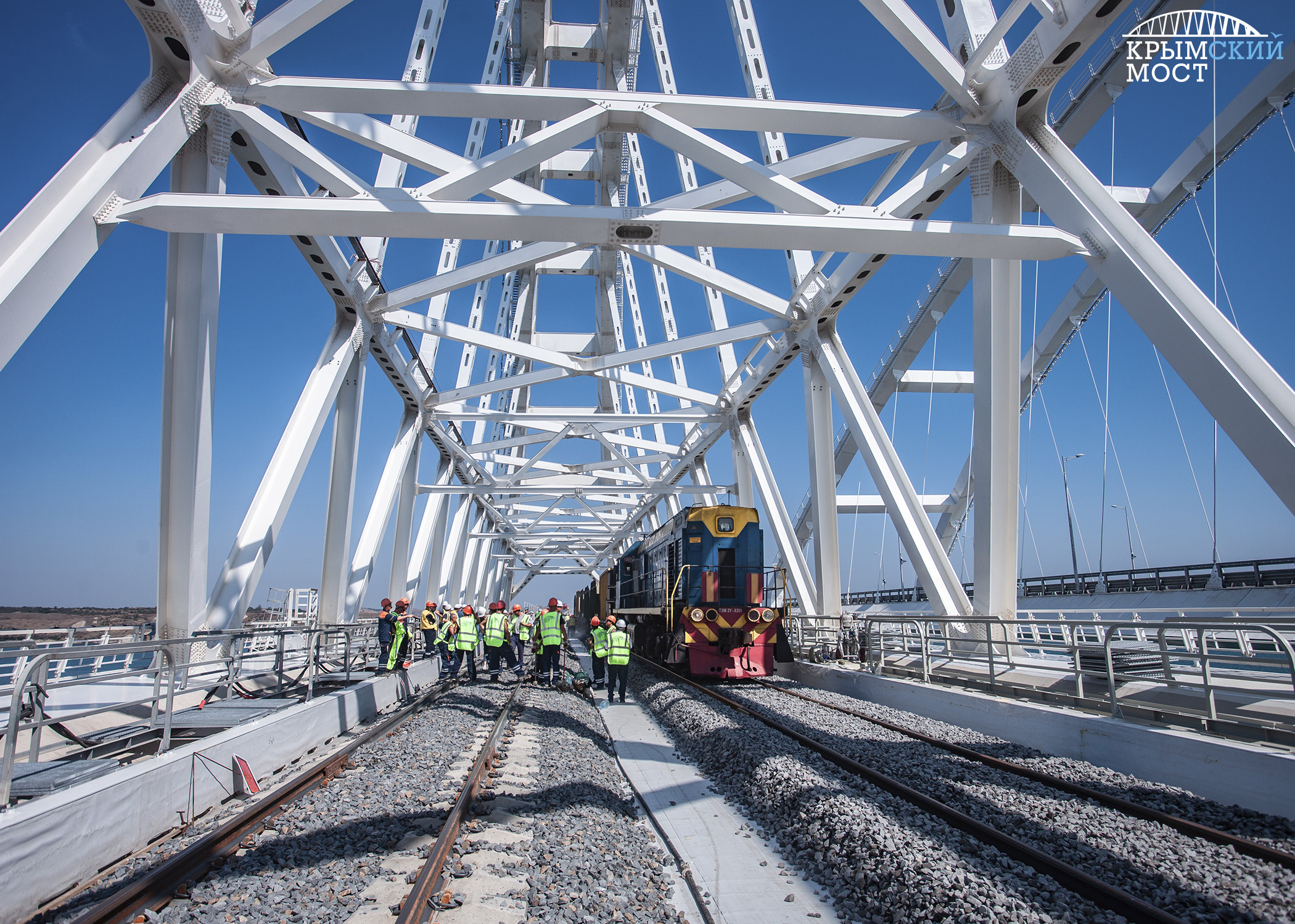 Две бригады – со стороны Керчи и Тамани – встретились и сомкнули рельсы под сводом арки. Финальные звенья были торжественно уложены на втором пути (крымское направление). На первом – для встречного движения – стыковку провели месяцем ранее. Суммарно на двухпутной железной дороге – почти 5 тысяч тонн рельсов и более 76 тысяч штук шпал.