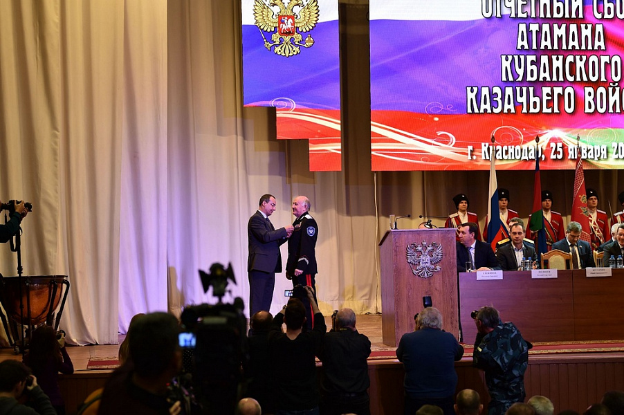 – Кубанское казачество благодаря Николаю Долуде стало другим – оно сделало реальные шаги вперед во всех направлениях, прошло процесс становления. Сегодня у вас впереди новый этап – развития. Это наша с вами ответственность – не только продолжить дело Николая Долуды, но и выявить новые точки роста, – сказал глава региона.