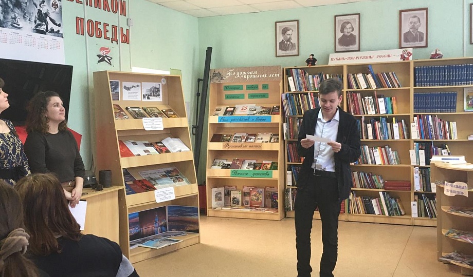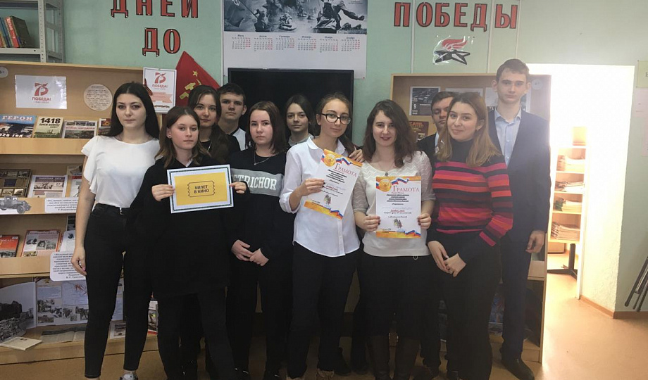 Спонсором данного мероприятия стал МАУ «Кинодосуговый центр «Тамань» (директор Кистанова Игоря Александровича), 10 «А» классу был подарен бесплатный билет на просмотр фильма «Калашников», сообщила заведующая городской библиотеки Баштовенко Л.Н.