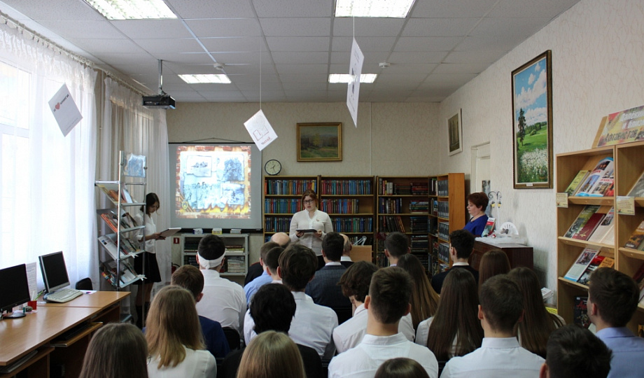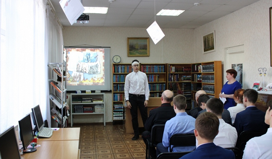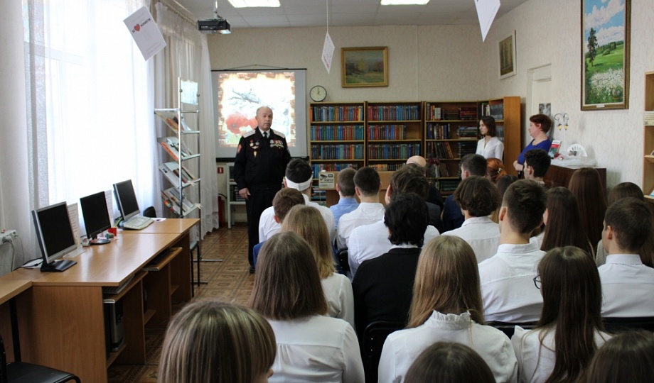 В начале программы был показан видеоролик, положенный на песню Олега Удачи «Журавли». Затем ведущие, библиограф библиотеки и ученица 10 «В» класса Софья Скороходова, рассказали старшеклассникам о причине ввода наших войск на территорию республики Афганистан, о смелости и отваге Советских солдат и офицеров, о нелёгкой службе на чужой стороне.