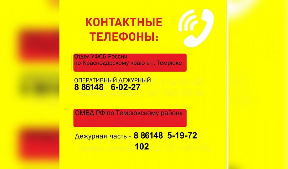 Оперативный дежурный Отдела УФСБ РФ по Краснодарскому краю в городе Темрюке: 8(86148)6-02-27