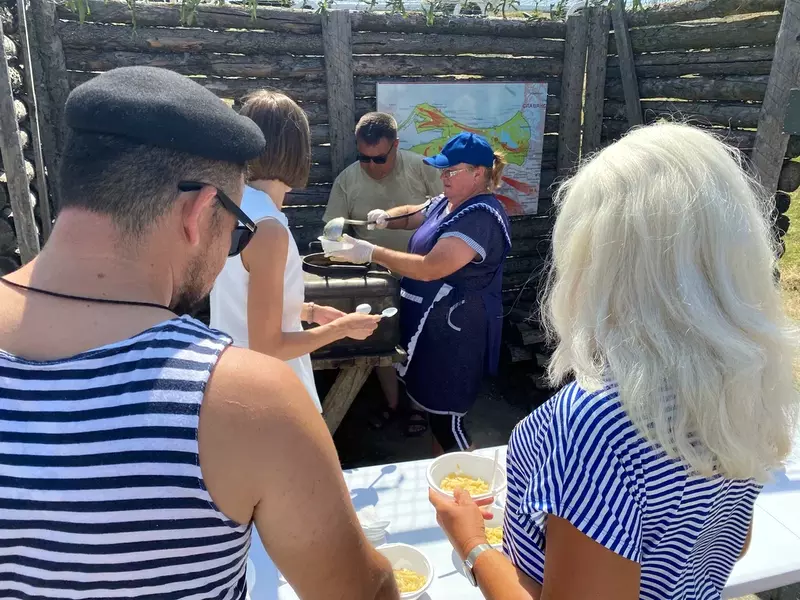 Научный сотрудник отдела фондов Анна Чигладзе провела тематическую экскурсию, раскрывающую захватывающие страницы морской истории Тамани. После насыщенной экскурсии всех ждали макароны по-флотски, приготовленные по традиционному рецепту на полевой кухне. Это была отличная возможность подкрепиться и поделиться впечатлениями от увиденного с другими участниками мероприятия.