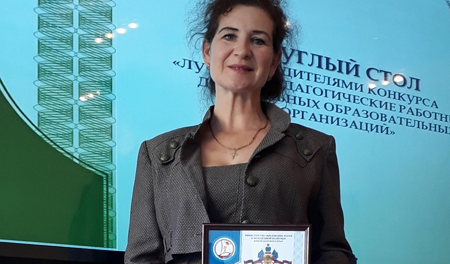 В Краснодаре в институте развития образования состоялось награждение участников краевого конкурса «Лучшие педагогические работники дошкольных образовательных организаций» в 2019 году. Среди них – музыкальный руководитель муниципального бюджетного дошкольного образовательного учреждения детский сад комбинированного вида № 23 Елена Алешкина.