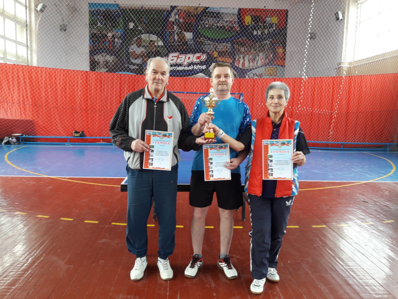 В преддверии 75-летнего юбилея Победы в Великой Отечественной войне в спортивном клубе «Барс» прошёл открытый турнир по настольному теннису среди ветеранов старше 55 лет.