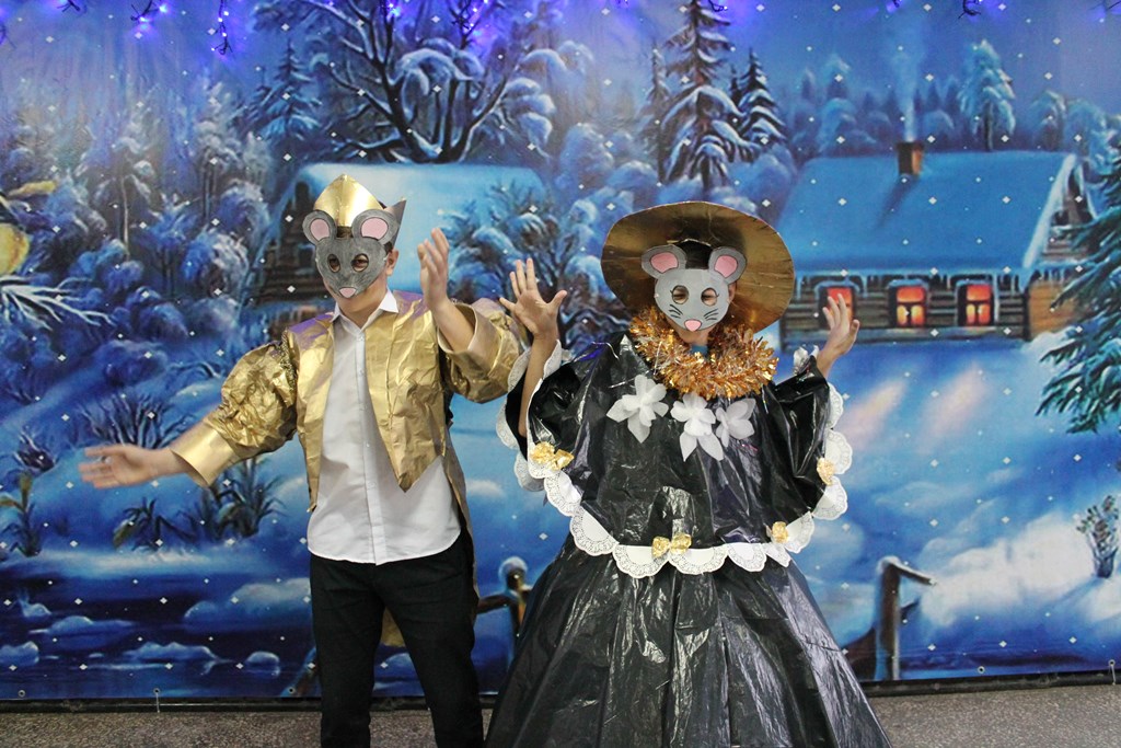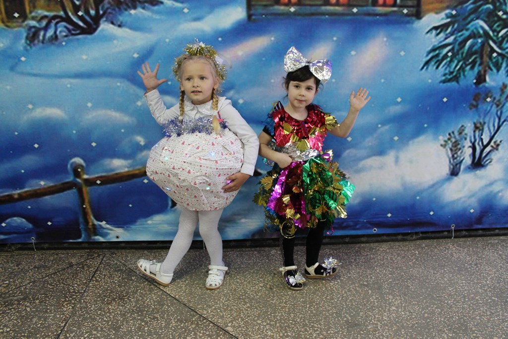 Новогодние костюмы для этого муниципального новогоднего конкурса были изготовлены из разноцветных пакетов для мусора, картона, магнитофонных лент, одноразовой посуды, упаковочного материала, фетра, мишуры… В дело пошли даже рекламные каталоги магазинов. Получились яркие и необычные Ёлочки, Снежинки, Хлопушка, Рыцарь, Бабочка, Гном, Клубничка, Звёздочка, Ковбой, Летучая мышь, Эльф, Мешок с деньгами, Джентльмен, Динозавр… Дети не только демонстрировали свои костюмы, но и пели, читали стихи, танцевали. А новогодний мыши девятиклассники школы № 24 Валерий Обломов и Виталий Яременко вместе со своими педагогами Еленой Дмитриевой и Ольгой Кудряковой подготовили мини-спектакль, вызвав у всех бурю восторга, аплодисментов и получив заслуженное первое место.