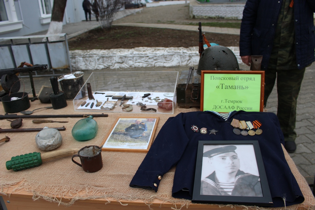 Перед началом празднования Дня защитника Отечества на главной городской площади развернулась выставка техники, в которую были включены как современные автомобили служб срочного реагирования, так и ретромашины. Большое внимание привлекли находки времен Великой Отечественной войны, их показал поисковый отряд «Тамань». Подходившим ребятам предлагали проверить и пополнить свои знания военной истории. Все желающие могли согреться чаем и кашей из настоящей полевой кухни. Продолжение выставки было представлено на втором этаже в фойе РДК. Там свои экспозиции расположили различные учреждения Темрюкского района.