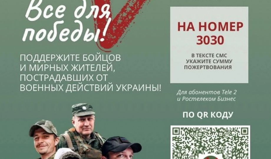 Акция под девизом «Всё для победы!» проводится Общероссийским Народным фронтом в поддержку бойцов СВО и мирных жителей новых и приграничных регионов.