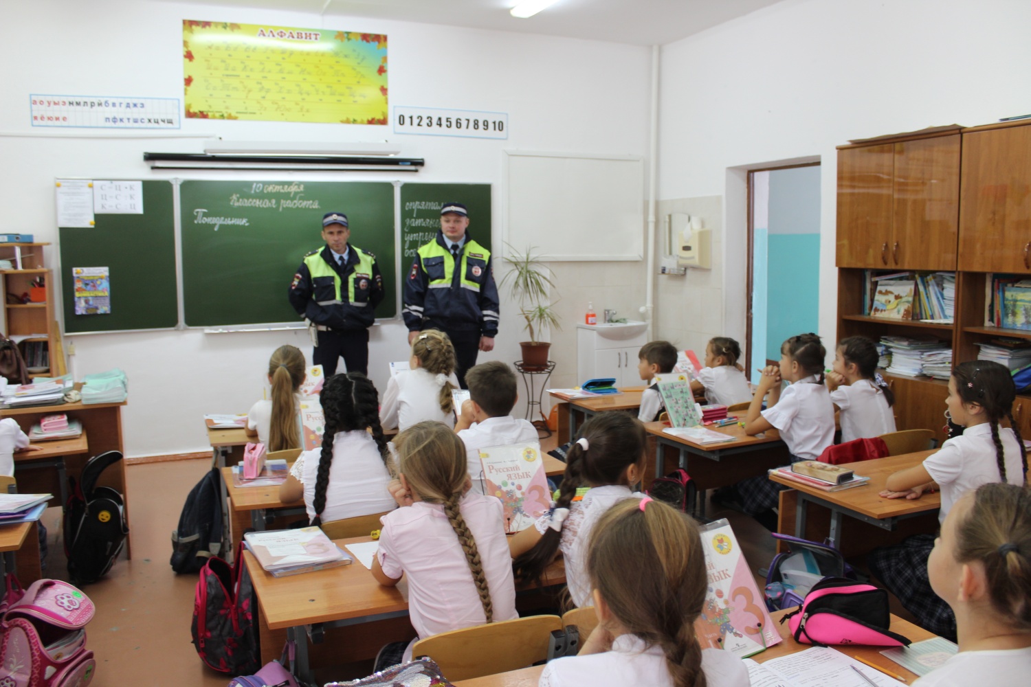 Инспекторы ДПС напомнили ученикам 3-го класса общеобразовательной школы № 13 правила игры во дворе, поведения на улице, сигналы светофора, разновидности дорожных знаков и жесты регулировщика. Также в ходе проведения мероприятия, полицейский рассказал детям о пешеходном переходе, правилах которыми должен руководствоваться пешеход и светоотражающих элементах - фликерах.