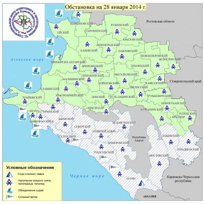 Согласно оперативному ежедневному прогнозу, поступившему в управление по делам ГО и ЧС по Темрюкскому району из Краснодара, 28 января на территории муниципальных образований: Ейский, Приморско-Ахтарский, Славянский, Темрюкский, Щербиновский районы, в Анапе, Новороссийске и в Керченском проливе существует вероятность возникновения ЧС и происшествий, связанных с: