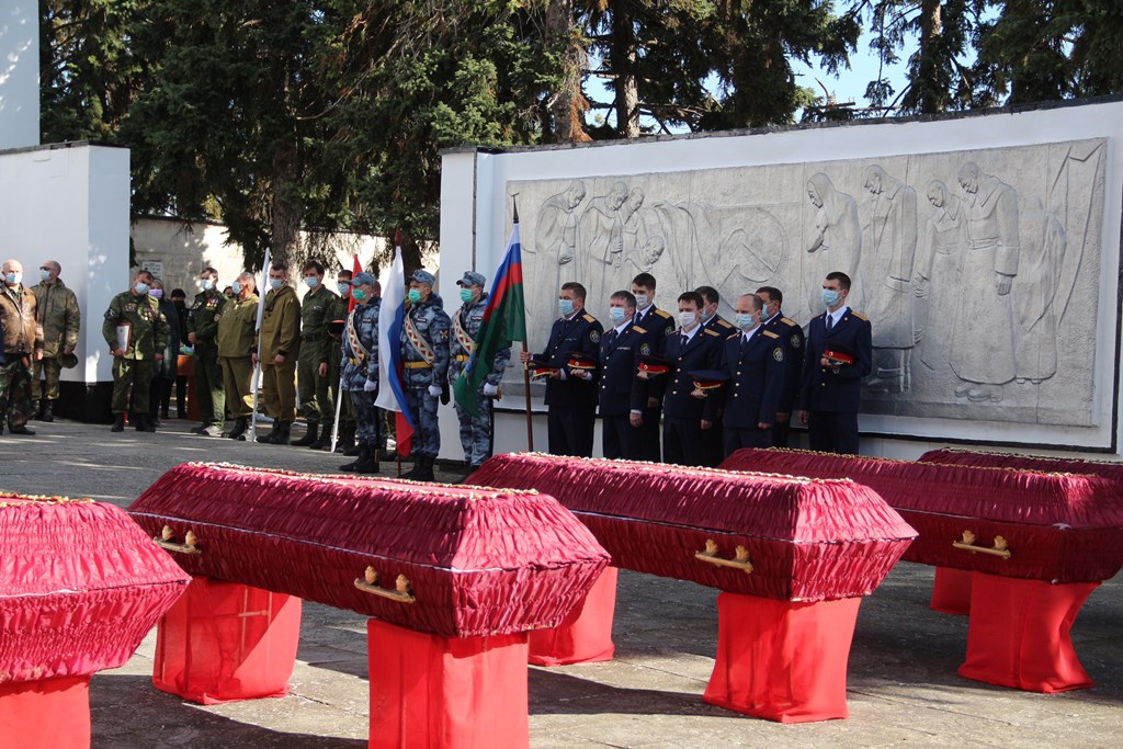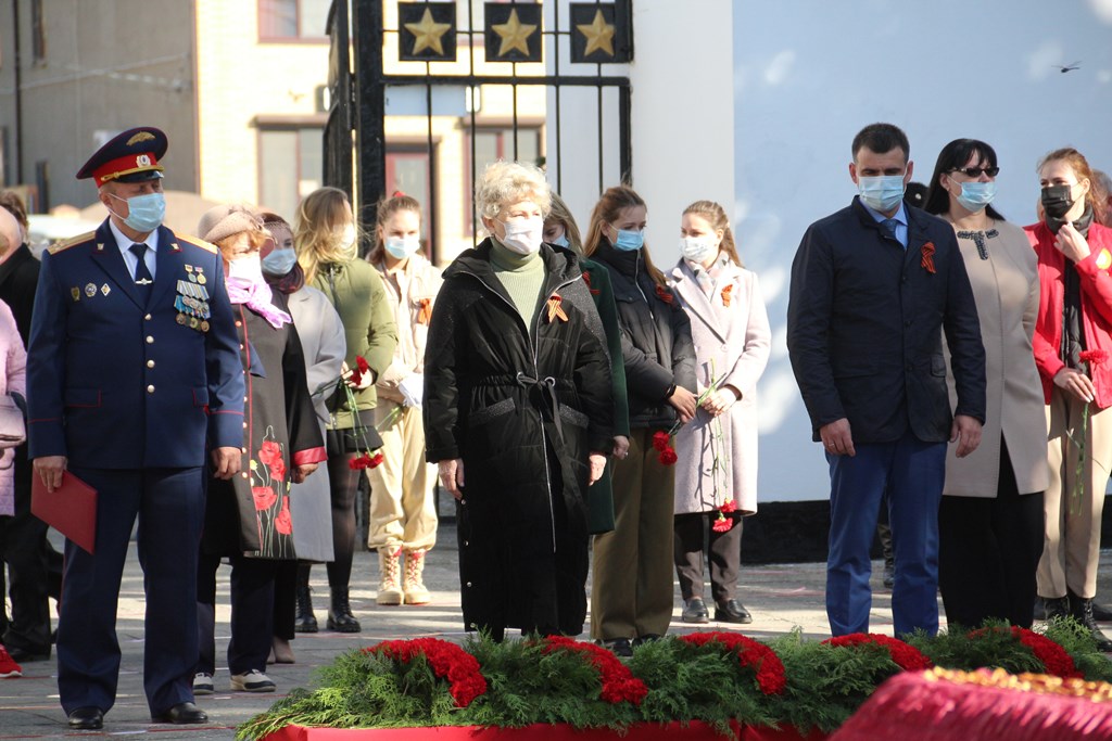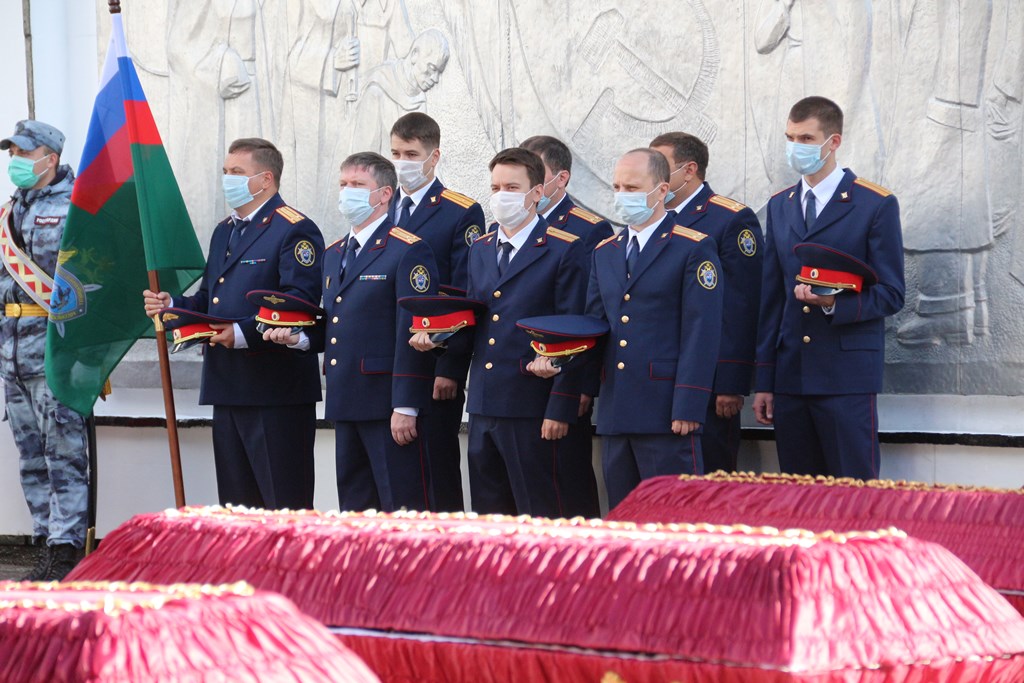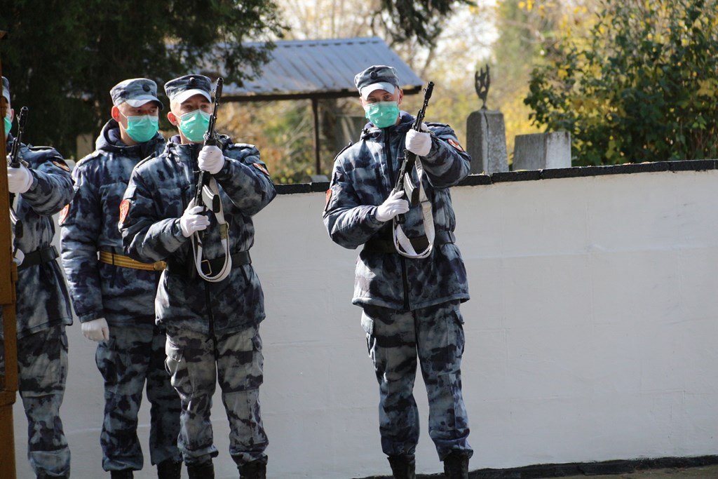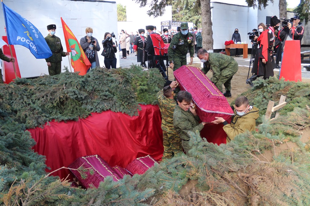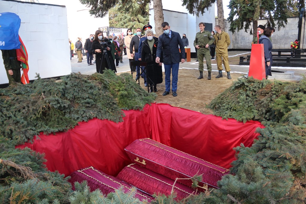 После минуты молчания под оружейные залпы сотрудники поискового отряда бережно опустили гробы с останками в могилу. В память о погибших в годы Великой Отечественной к вечному огню возложили цветы.