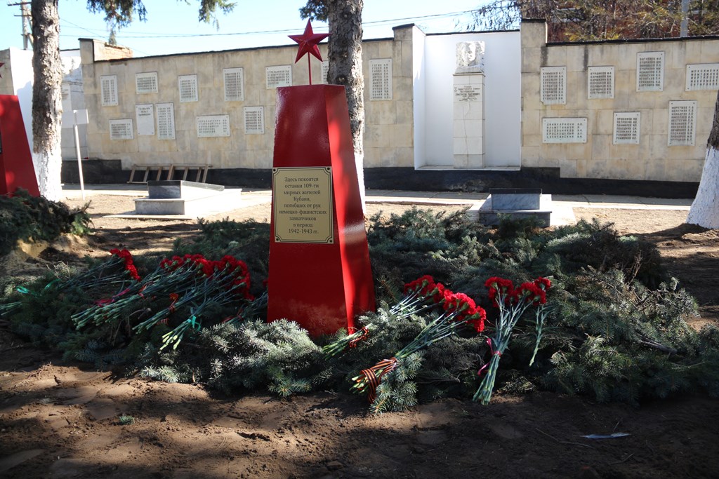 В городе воинской доблести Темрюк, на территории мемориала «Вечный огонь» состоялось торжественное перезахоронение останков 109 мирных жителей, зверски убитых в годы Великой Отечественной войны немцами в 1942-43 годах. Стихийное захоронение было обнаружено поисковым отрядом «Тамань».